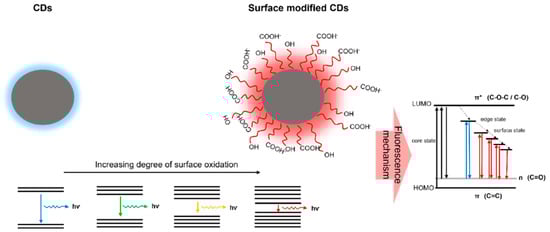 Scheme illustration of tunable PL of CDs with different degrees of oxidation.