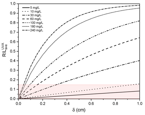The above result permits to obtain a UVA average , in terms of and RR239 concentration, using the Beer–Lambert model by applying a linear regression for , thus,
