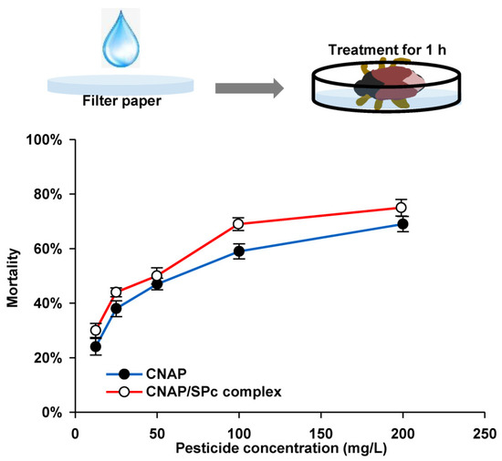 Toxicity of CNAP and CNAP/SPc complex against adults of Orius sauteri at 24 h after the treatment.