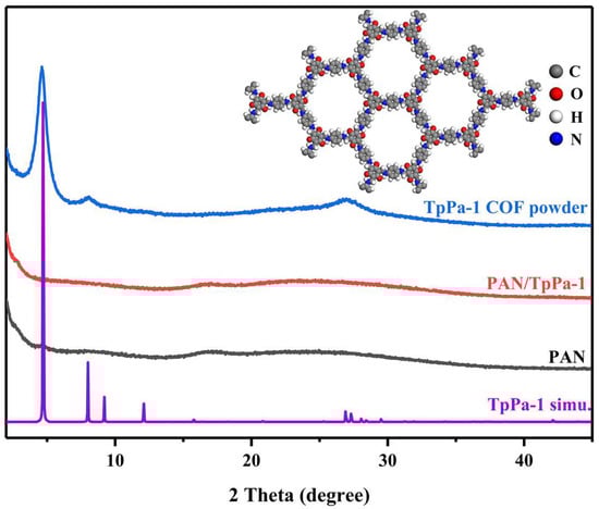 3.1. Characterization of PAN/TpPa–1 Nanofiber