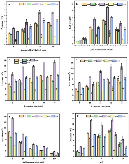 3.2.1. Effect of Amount of PAN/TpPa–1 Nanofiber on the Extraction of QAs