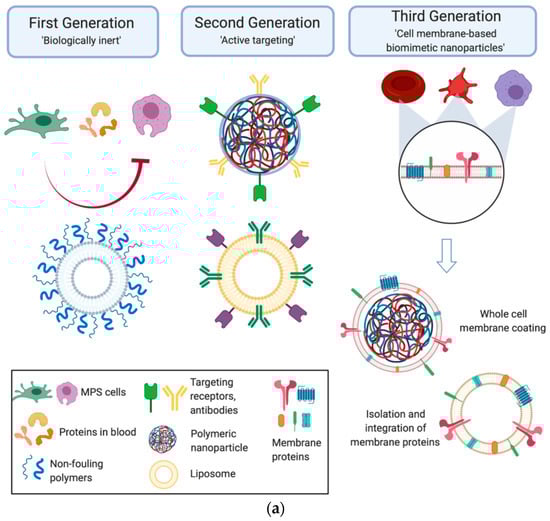 An example of the technological evolution of NPs is the synthesis of biomimetic nanomaterials (BNMs) that specifically accumulate in the inflammatory zone. Over the past thirty years, the development of such NPs has largely relied on three strategies []: