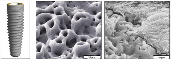 The development of biomimetic methods for the synthesis of metallic nanomaterials plays an important role in dentistry. In recent years, various approaches have been used to modify the topographical or chemical properties of traditional implant surfaces in order to improve the adhesion of the implant material to bone cells. Changing the surface of a titanium implant makes it possible to stimulate the bone tissue, minimizing the period of osseointegration and ensuring the good transfer of occlusal mechanical loads from the implant to the bone [] (Figure 8).