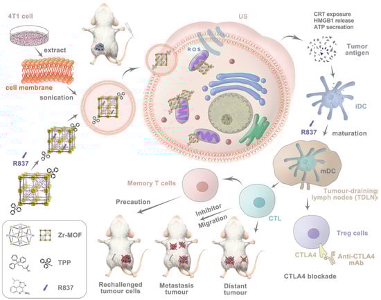 - Luo, J.; Wang, X.; Shi, Z.; Zeng, Y.; He, L.; Cao, J.; Sun, Y.; Zhang, T.; Huang, P. Enhancement of antitumor immunotherapy using mitochondria-targeted cancer cell membrane-biomimetic MOF-mediated sonodynamic therapy and checkpoint blockade immunotherapy. J. Nanobiotechnol. 2022, 20, 228. [Google Scholar] [CrossRef]