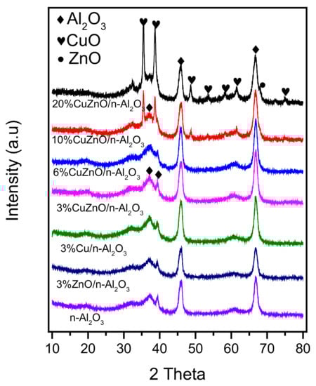 | Temperature (°C) | n-Al2O3 | 3% ZnO/n-Al2O3 | 3% Cu/n-Al2O3 | 3% CuZnO/n-Al2O3 |