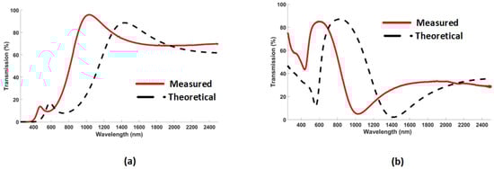 The theoretical plot obtained with the help of layers’ thicknesses in Table 2 are plotted and compared with the experimental results in Figure 9.