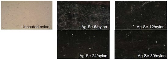 An image of uncoated nylon and obtained Ag–Se/nylon nanocomposites. Magnification 100×.