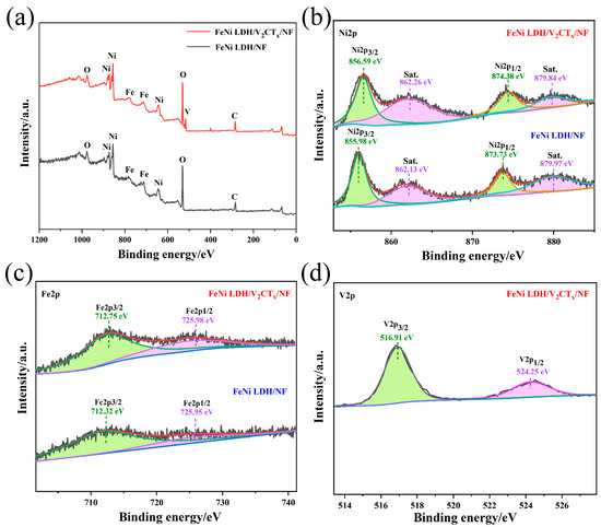 - Chen, Y.; Yao, H.; Kong, F.; Tian, H.; Meng, G.; Wang, S.; Mao, X.; Cui, X.; Hou, X.; Shi, J. V2C MXene synergistically coupling FeNi LDH nanosheets for boosting oxygen evolution reaction. Appl. Catal. B Environ. 2021, 297, 120474. [Google Scholar] [CrossRef]