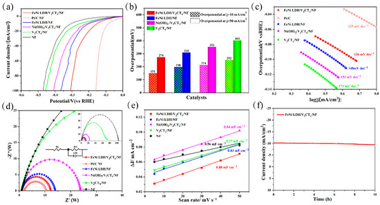 - Li, Z.; Wang, X.; Ren, J.; Wang, H. NiFe LDH/Ti3C2Tx/nickel foam as a binder-free electrode with enhanced oxygen evolution reaction performance. Int. J. Hydrogen Energy 2022, 47, 3886–3892. [Google Scholar] [CrossRef]