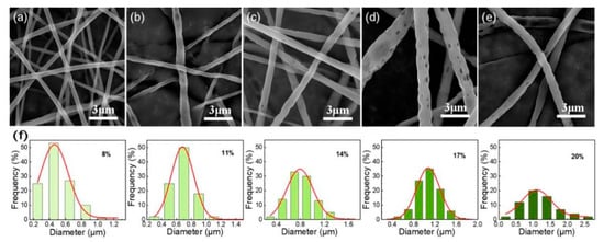 3.1. The Influence of Solution Concentration on Fiber Morphology and Pores