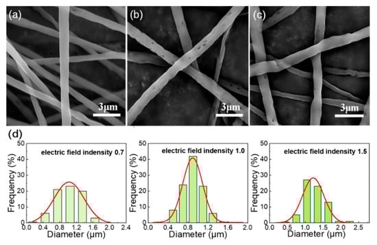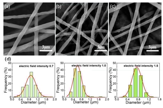 3.2. Influence of Solvent Volume Ratio on Fiber Morphology and Pores