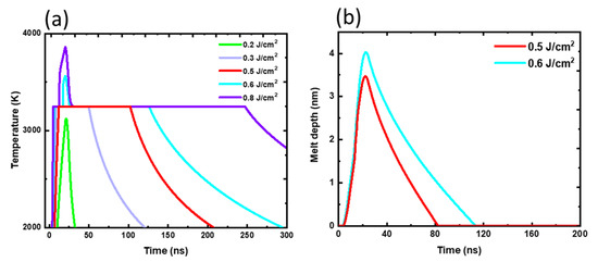 - Narayan, J.; White, C.; Holland, O.; Aziz, M.J. Phase transformation and impurity redistribution during pulsed laser irradiation of amorphous silicon layers. J. Appl. Phys. 1984, 56, 1821–1830. [Google Scholar] [CrossRef] [Green Version]