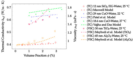 - Apmann, K.; Fulmer, R.; Soto, A.; Vafaei, S. Thermal Conductivity and Viscosity: Review and Optimization of Effects of Nanoparticles. Materials 2021, 14, 1291. [Google Scholar] [CrossRef] [PubMed]