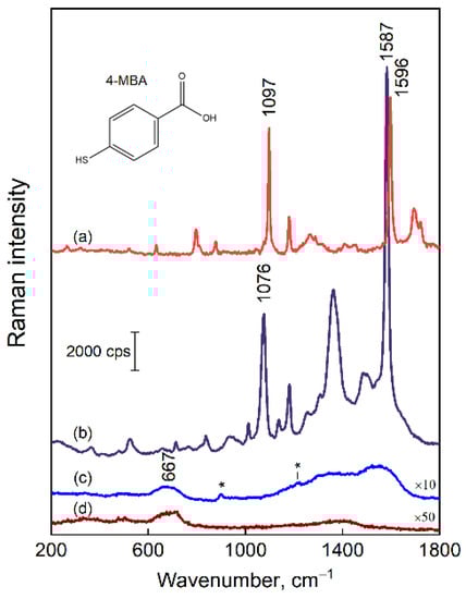- Szaniawska, A.; Kudelski, A. Applications of Surface-Enhanced Raman Scattering in Biochemical and Medical Analysis. Front. Chem. 2021, 9, 664134. [Google Scholar] [CrossRef]