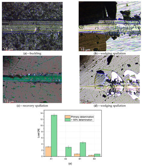 - Bull, S.J.; Berasetegui, E.G. An overview of the potential of quantitative coating adhesion measurement by scratch testing. Tribol. Int. 2006, 39, 99–114. [Google Scholar] [CrossRef]