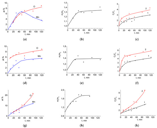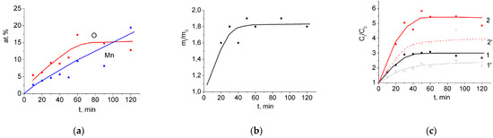 | C, at.% | O, at.% | Mn, at.% | C, at.% | O, at.% | Mn, at.% | C, at.% | O, at.% | Mn, at.% | |