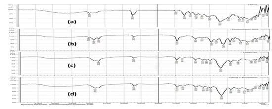 To provide the optimum interaction, the drug and excipient ratio in the formulation of transferosomes was studied at a 1:1 proportion. Additionally, the interaction between the drug and excipient was verified by FTIR (Shimadzu IR Affinity, Kyoto, Japan) in the scanning range of 4000–400 cm−1 using the KBr technique [25].