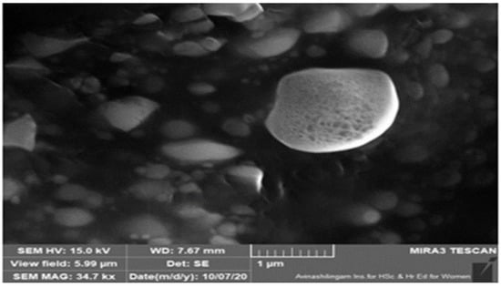 SEM was employed for the visualization of the vesicle morphology. A glass slide was covered with one drop of transferosomal preparation, which was then spread out and left to dry. The item was coated with gold using a cool spit coater after it had dried and was then visualized with a scanning electron microscope at a voltage of 10 KV [29,30].