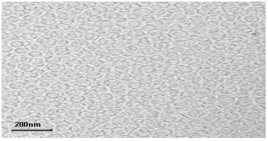 The formulated OTP was envisioned by TEM; the image is presented in Figure 7. The TEM image witnesses the presence of a multilamellar vesicular structure. Nonetheless, these lamellar vesicles were discovered to be spaced to the core [49].