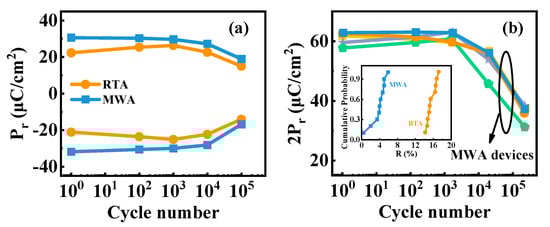 - Jiang, P.; Luo, Q.; Xu, X.; Gong, T.; Yuan, P.; Wang, Y.; Gao, Z.; Wei, W.; Tai, L.; Lv, H. Wake-Up Effect in HfO2-Based Ferroelectric Films. Adv. Electron. Mater. 2021, 7, 2000728. [Google Scholar] [CrossRef]