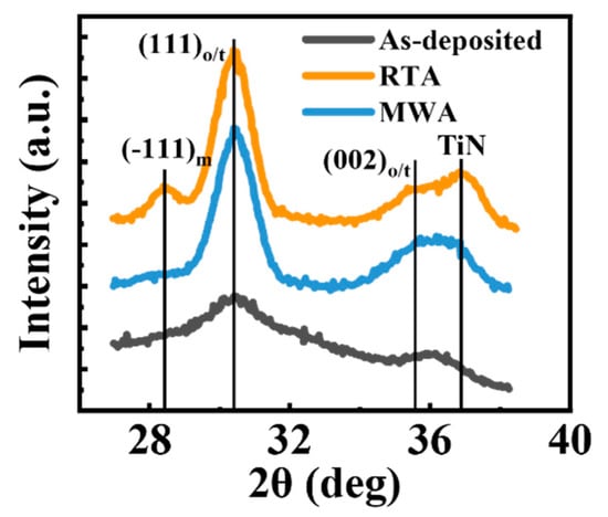 Chicago/Turabian StyleZhao, Biyao, Yunting Yan, Jinshun Bi, Gaobo Xu, Yannan Xu, Xueqin Yang, Linjie Fan, and Mengxin Liu. 2022. "Improved Ferroelectric Properties in Hf0.5Zr0.5O2 Thin Films by Microwave Annealing" Nanomaterials 12, no. 17: 3001. https://doi.org/10.3390/nano12173001