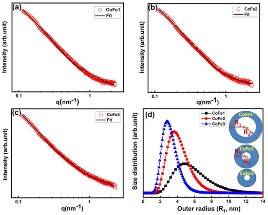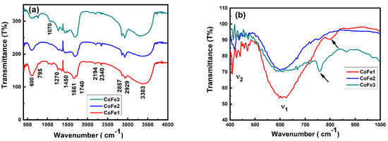 - Ansari, S.M.; Sinha, B.B.; Phase, D.; Sen, D.; Sastry, P.U.; Kolekar, Y.D.; Ramana, C.V. Particle Size, Morphology, and Chemical Composition Controlled CoFe2O4 Nanoparticles with Tunable Magnetic Properties via Oleic Acid Based Solvothermal Synthesis for Application in Electronic Devices. ACS Appl. Nano Mater. 2019, 2, 1828–1843. [Google Scholar] [CrossRef]