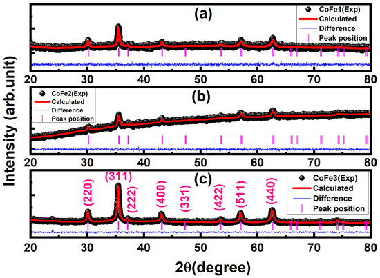 - Bhowmik, R.N.; Kazhugasalamoorthy, S.; Ranganathan, R.; Sinha, A.K. Tuning of composite cubic spinel structure in Co1.75Fe1.25O4 spinel oxide by thermal treatment and its effects on modifying the ferrimagnetic properties. J. Alloy. Compd. 2016, 680, 315–327. [Google Scholar] [CrossRef]