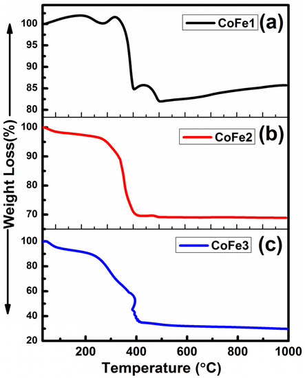- Stefanescu, M.; Marcela, S.; Caizer, S.; Dippong, T.; Barvinschi, P. Preparation of CoxFe3−xO4 nanoparticles by thermal decomposition of some organo-metallic precursors. J. Therm. Anal. Calorim. 2009, 97, 245–250. [Google Scholar] [CrossRef]