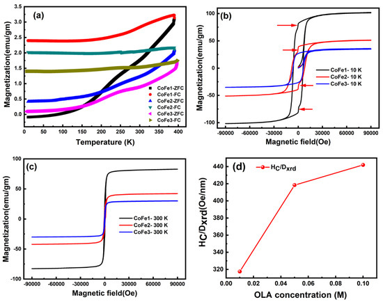 - Jovanović, S.; Spreitzer, M.; Tramšek, M.; Trontelj, Z.; Suvorov, D. Effect of Oleic Acid Concentration on the Physicochemical Properties of Cobalt Ferrite Nanoparticles. J. Phys. Chem. C 2014, 118, 13844–13856. [Google Scholar] [CrossRef]