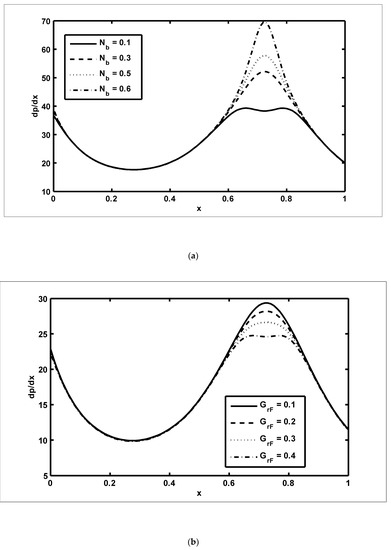 - The pressure gradient increased with increasing values of the Brownian motion parameter, whereas it decreased with increasing values of the nanoparticle Grashof number;