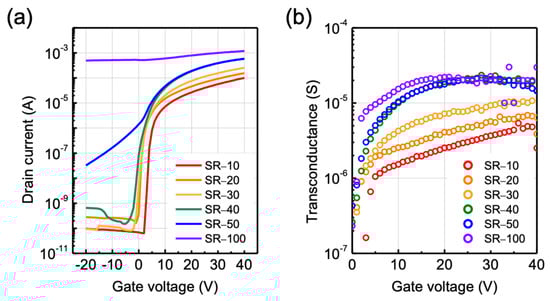 - Zeumault, A.; Subramanian, V. Mobility Enhancement in Solution-Processed Transparent Conductive Oxide TFTs due to Electron Donation from Traps in High-k Gate Dielectrics. Adv. Funct. Mater. 2016, 26, 955–996. [Google Scholar] [CrossRef]