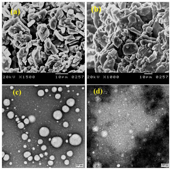 SEM and TEM images for LC-CS nanoparticles cross-linked with TPP (a,c) and TEM and SEM images (b,d) for LC-CS nanoparticles cross-linked with ALG.