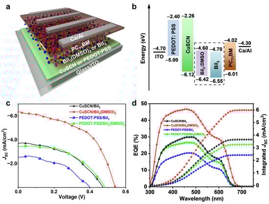 - Hamdeh, U.H.; Nelson, R.D.; Ryan, B.J.; Bhattacharjee, U.; Petrich, J.W.; Panthani, M.G. Solution-Processed BiI3 Thin Films for Photovoltaic Applications: Improved Carrier Collection via Solvent Annealing. Chem. Mater. 2016, 28, 6567–6574. [Google Scholar] [CrossRef]