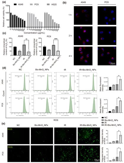 3.2. Bio-MnO2 NPs Eliminated H2O2 and Enhanced ROS Production in NSCLC Cells