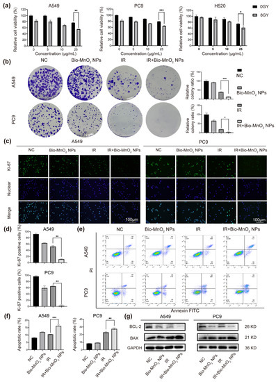 3.3. Bio-MnO2 NPs Enhanced Radiosensitivity of NSCLC Cells In Vitro