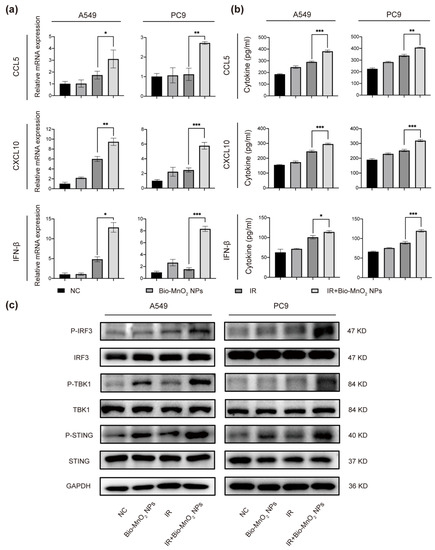 3.5. Bio-MnO2 NPs plus Radiation Enhanced the Activation of cGAS/STING Signaling Pathway