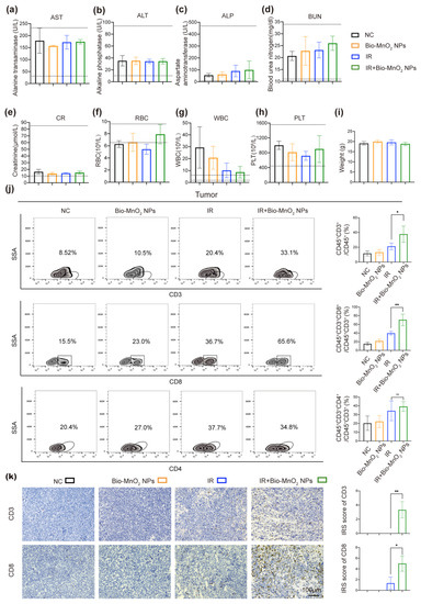 3.9. Cytotoxic T Cells Played an Important Role in Immune Responses Activated by Bio-MnO2 NPs Plus Radiation In Vivo