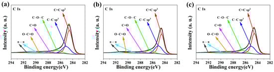 XPS spectra for C1s of representative samples of the obtained N-rich activated carbons: (a) AC–O-II; (b) AC–KB-II; and (c) AC–N-II.