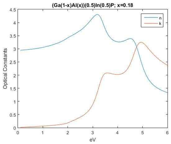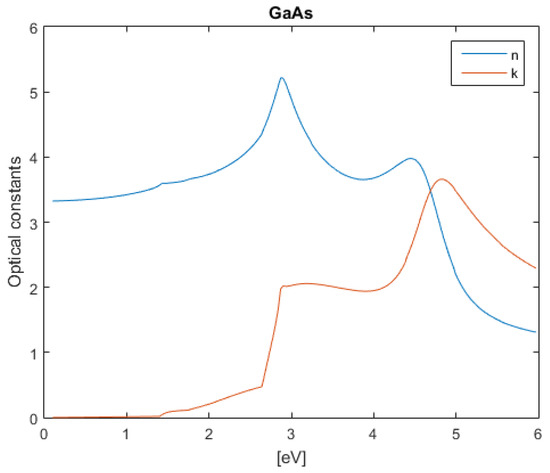As the developed model required the optical constant values, these are obtained following Expressions (16) and (17) for the real and imaginary parts of the complex refractive index, respectively.