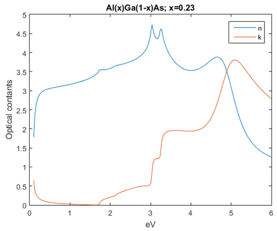 - Adachi, S. Optical properties of AlxGa1−xAs alloys. Phys. Rev. B 1988, 38, 12345–12352. [Google Scholar] [CrossRef]