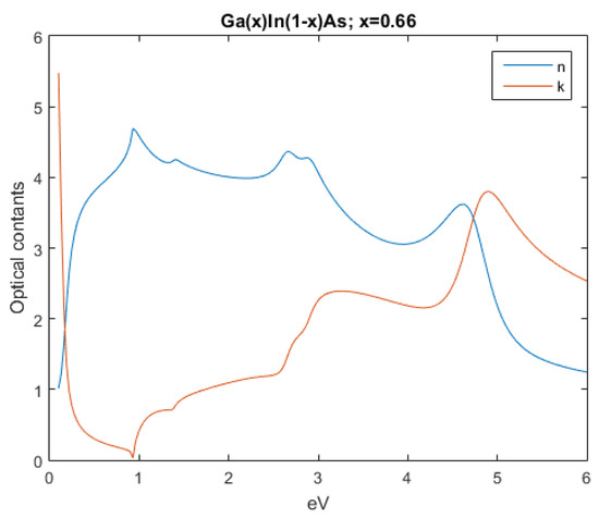 Following an identical procedure as the one described earlier, the optical constants of were obtained, resulting in the variation displayed in Figure 2.