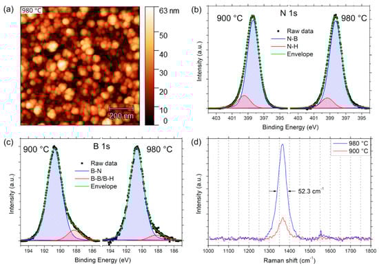 - Singhal, R.; Echeverria, E.; McIlroy, D.N.; Singh, R.N. Synthesis of hexagonal boron nitride films on silicon and sapphire substrates by low-pressure chemical vapor deposition. Thin Solid Film 2021, 733, 138812. [Google Scholar] [CrossRef]