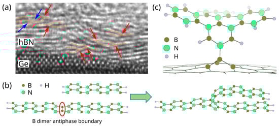 - Yin, J.; Liu, X.; Lu, W.; Li, J.; Cao, Y.; Li, Y.; Xu, Y.; Li, X.; Zhou, J.; Jin, C.; et al. Aligned Growth of Hexagonal Boron Nitride Monolayer on Germanium. Small 2015, 11, 5375–5380. [Google Scholar] [CrossRef]