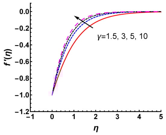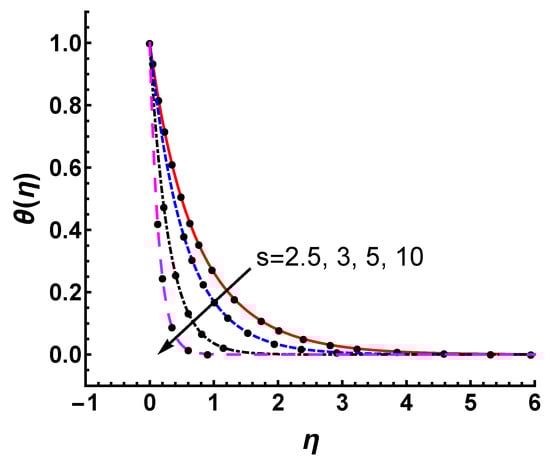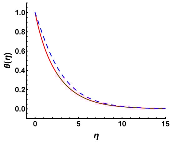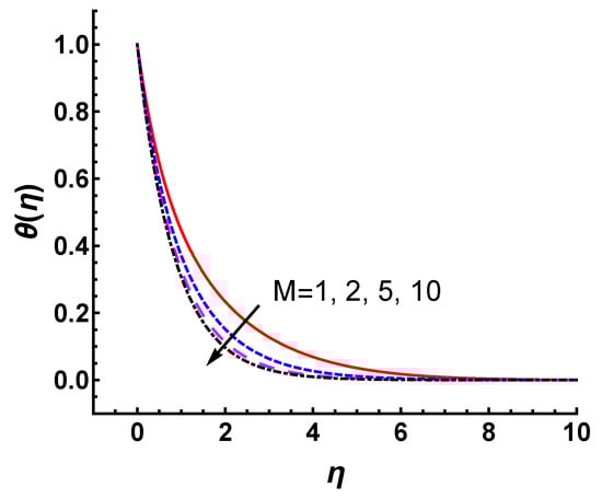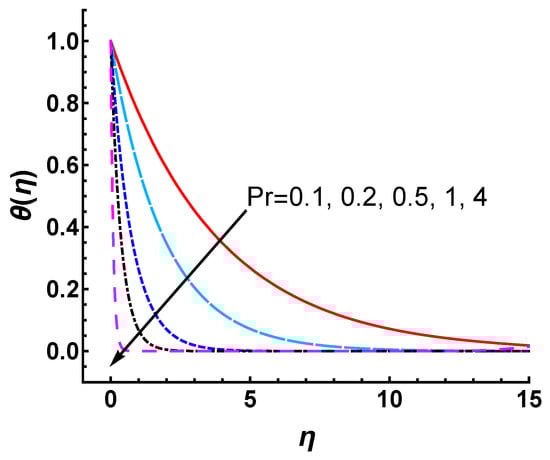- The temperature profile decreases slightly with increasing values of in the current case, which decreases the thermal boundary layer thickness.