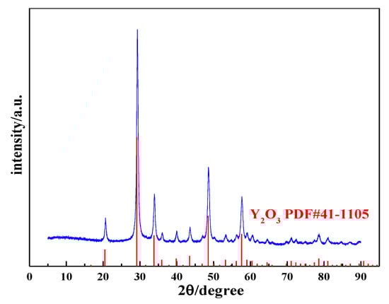 Continuous in-depth research by scientific and technological workers has established that the physical and chemical properties of materials are affected not only by their composition and particle size but also by their morphology [1,2,3,4,5,6]. When electrons are confined in a one-dimensional (1D) quantum wire, they only have one degree of freedom along the direction of the quantum wire, which alters the scattering effect of the electron movement, resulting in the physicochemical properties of 1D materials being different from other dimensions [7,8,9]. Yttrium oxide has excellent properties, such as optical properties, catalytic capabilities, and high-temperature stability [10,11,12]. It is one of the most promising rare-earth compounds and has been widely used in laser crystals, high-brightness fluorescent substrates, catalysts, and fine ceramics [13]. Yttrium oxide with a one-dimensional (1D) structure not only has the unique optical, electrical, and magnetic properties of the rare earth element yttrium, but also has excellent characteristics of 1D structural materials, and its design and synthesis have received increasing attention [7].
