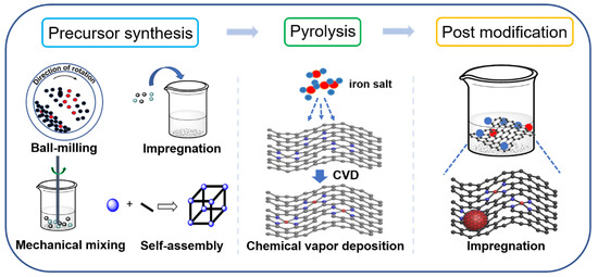 2.1. The Introduction Strategies of Iron into Carbon Materials