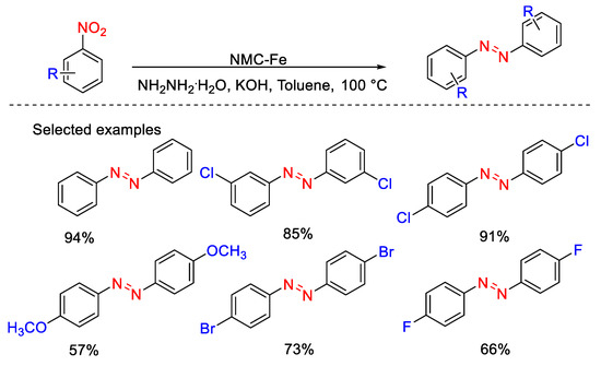 - Lu, G.; Sun, K.; Lin, Y.; Du, Q.; Zhang, J.; Wang, K.; Wang, P. Single-atomic-site iron on N-doped carbon for chemoselective reduction of nitroarenes. Nano Res. 2022, 15, 603–611. [Google Scholar] [CrossRef]