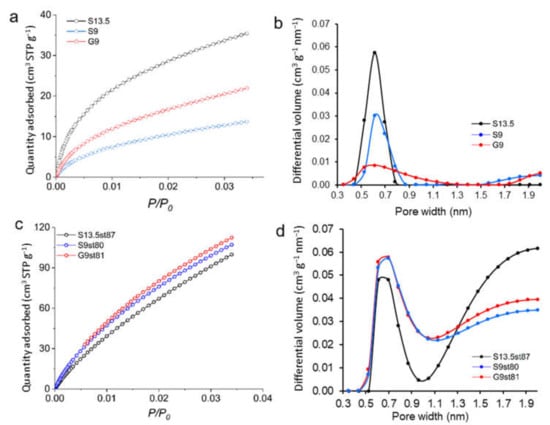 - Pinto, M.L.; Mestre, A.S.; Carvalho, A.P.; Pires, J. Comparison of methods to obtain micropore size distributions of carbonaceous materials from CO2 adsorption based on the Dubinin-Radushkevich isotherm. Ind. Eng. Chem. Res. 2010, 49, 4726–4730. [Google Scholar] [CrossRef]
