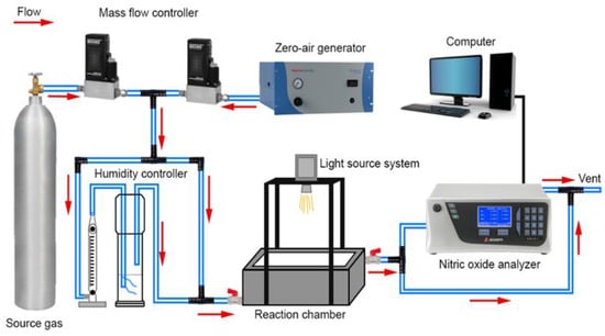 Air pollutants that are highly reactive include nitrogen oxides (NOx), usually caused by anthropogenic activities, particularly fuel combustion [1]. There are two approaches to controlling NOx emissions: primary measures to prevent NOx formation and secondary measures to reduce the NOx already formed [2]. Common primary measures include staged combustion [3] and exhaust gas recirculation [4], while secondary measures include the adoption of pollution control devices including selective catalytic reduction [5] and photocatalysts [6].