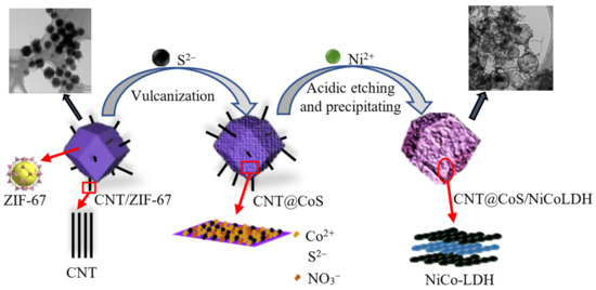 Proposed synthesis pathway of CNT@CoS/NiCo-LDH.